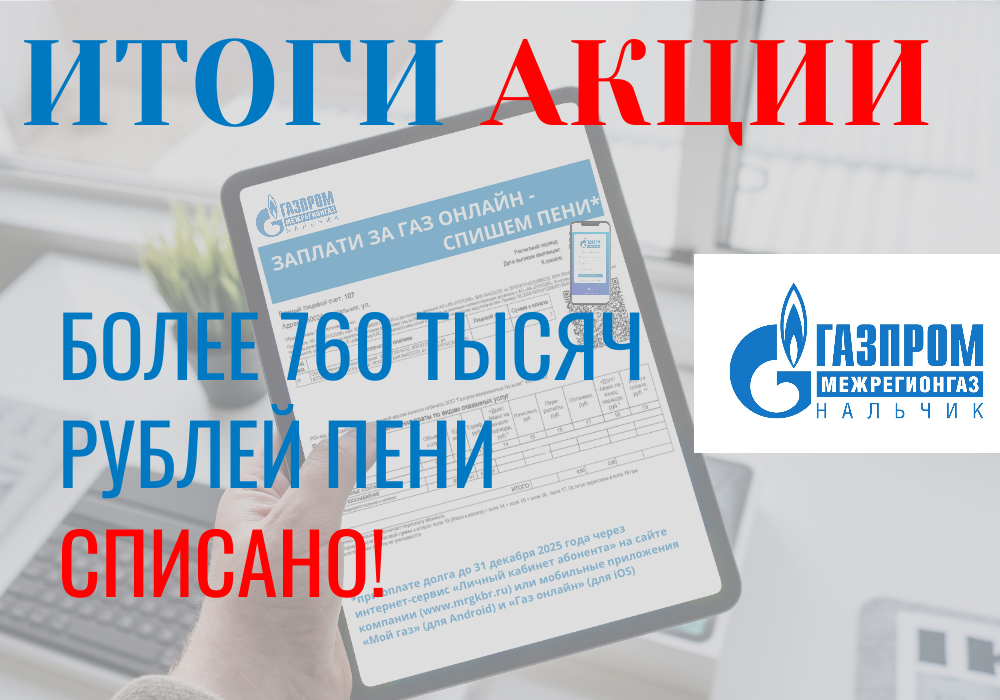 Компания «Газпром межрегионгаз Нальчик» завершила масштабную социальную акцию, направленную на поддержку своих абонентов в Кабаридно-Балкарской Республике. Благодаря этой акции более тысячи семей смогли избавиться от долговой нагрузки и начать новый год без пеней за несвоевременную оплату газа.